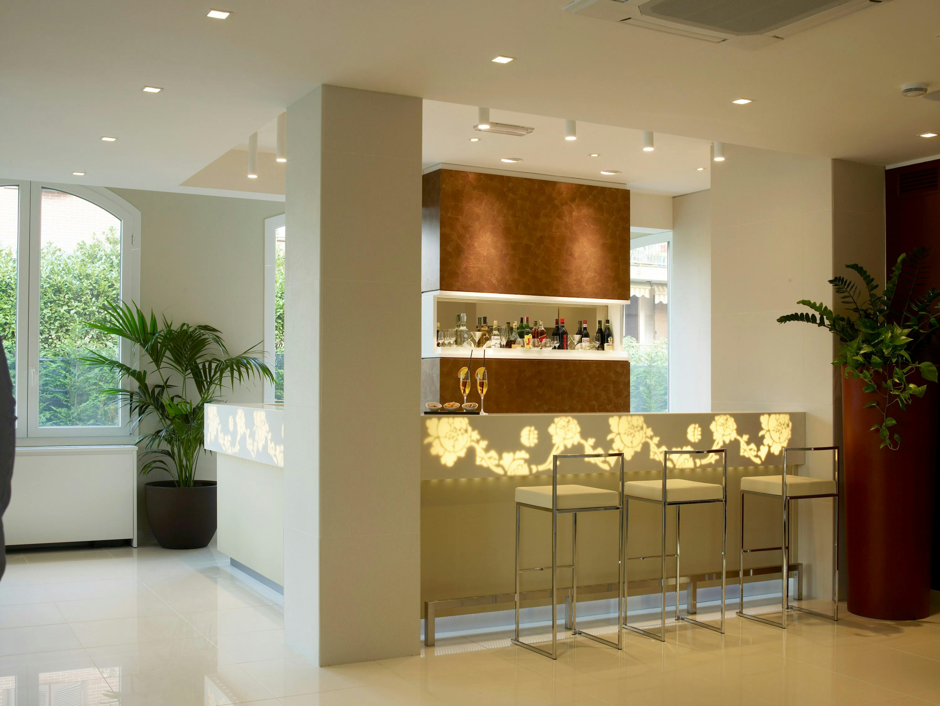 Every morning we prepare a rich buffet with a wide choice of sweet and savory products: hot brioches, fresh and toasted wholemeal and white bread, jams, butter, Nutella, cereals, fruit juices, yogurt, fresh and dried fruit, cakes, fresh cold cuts , hot buffet with eggs and bacon and products for celiacs. All genuine and quality products that can be enjoyed in the relaxation of your room or served at the table in our breakfast room, remodeled to ensure compliance with safety distances. We have also organized everything to allow guests to have dinner in our hotel! The half board dinner includes 2 or 3 courses to be chosen between starter, first course, second course with side dish and dessert, drinks included. As breakfast, dinner can also be served in your room or in the restaurant, always respecting safety distances. In our excellent restaurant you will discover the flavors of the regional and national gastronomic tradition, in a contemporary key, adapted to the refined taste of the guests and the needs of the international clientele. A cuisine based on a high quality of products, expertly combined by our Chef, who playing with flavors and contrasts will offer you decidedly creative menus. Come and enjoy a quality experience in a modern and elegant atmosphere. The lounge bar in the lobby, also available for corporate coffee breaks, offers a wide range of hot, alcoholic or refreshing drinks at any time.